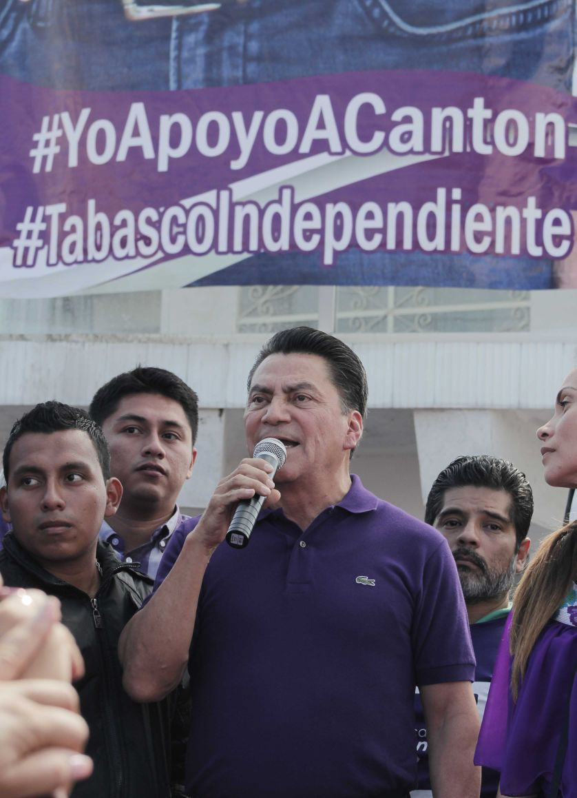 Junto a su esposa Mayra Enriquez de Cantón, sus hijos Paloma y Oscar, así como de aspirantes a alcaldes y diputados independientes, se presentó a la Oficialía de Partes del IEPCT a presentar los documentos que establece la convocatoria, entregándosele el acuse de recibo, para convertirse en aspirante, dijo tener la confianza en cumplir con todos los requisitos, además de ratificar que ha renunciado a su militancia en el PRD.
